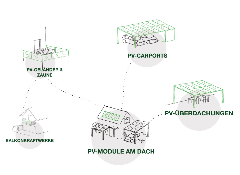 Mit Photovoltaikanlagen produzieren Sie Ihren Strom selbst und unabhängig vom schwankenden Energiemarkt. Für diese emissions- und geräuschlose Stromgewinnung nutzen Sie die Kraft der Sonne über Anlagen am Dach, dem Carport oder auf der Terrasse. Ihre Energiekosten können Sie zusätzlich durch einen optimierten Stromverbrauch senken. Unsere ergänzende Speicherlösung inklusive Umschaltbox schützt Sie im Inselbetrieb vor einem Blackout. Nebenbei steigern Sie umweltfreundlich den Wert Ihrer Immobilie.